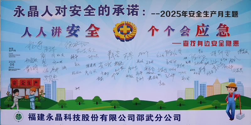安全之路,始于承諾,重在行動,貴在堅持。永晶科技總部與邵武分公司相繼成功舉辦2025年“安全生產(chǎn)月”啟動大會,不僅是一場隆重的儀式,更是一次深刻的安全動員和教育。從高層承諾到基層宣誓,從方案部署到隱患排查,從總部引領(lǐng)到屬地落實,每一個環(huán)節(jié)均彰顯永晶科技對安全生產(chǎn)的敬畏之心及永不懈怠的責(zé)任擔(dān)當(dāng)。